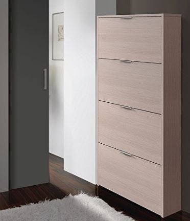 - Las puertas del zapatero son abatibles por lo que facilitan la apertura y colocación de tus pares de zapatos, ocupando poco espacio y aprovechando al máximo su interior con capacidad de 12 pares de zapatos.