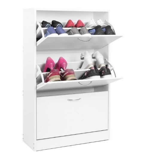 Mueble zapatero con tres puertas y capacidad para 18 pares – color blanco de Habitdesign
