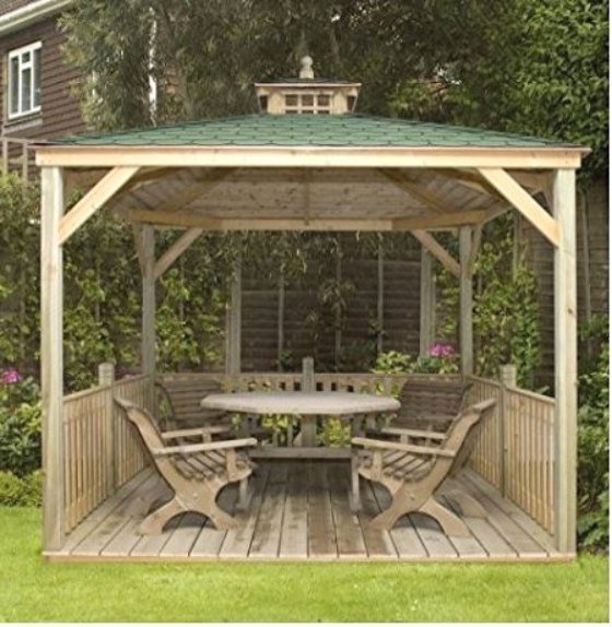 Fabricado con madera de abeto del norte de Europa, construido a mano. Diseño de diamante, que proporciona una espaciosa y luminosa área para que se relaje con sus amigos y familia.