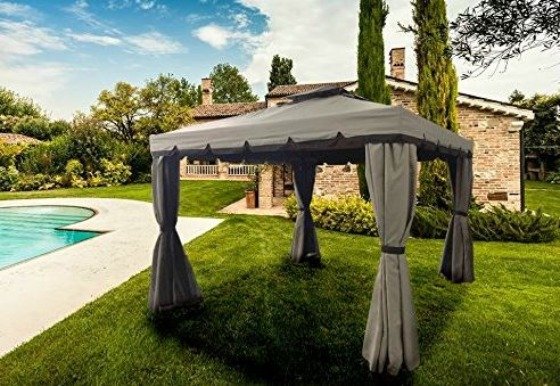 - Carpa gazebo con marco de acero galvanizado, duradero y estable. Tejido de poliéster 180g/m² con revestimiento PA resistente a la intemperie ,los rayos UV y al agua.