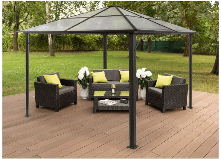 - ESTRUCTURA RESISTENTE: El marco metálico robusto y el techo de PC resistente a la intemperie, al agua y a los rayos UV, proporciona una gran estabilidad y resistencia