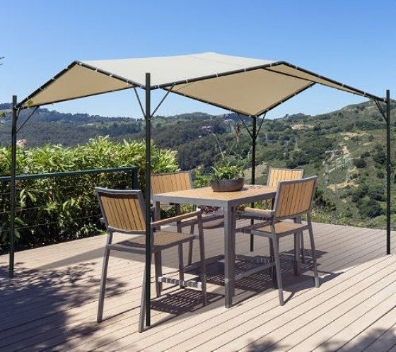 - Pérgola con marco de acero de buen acabado y antioxidante, duradero y estable.