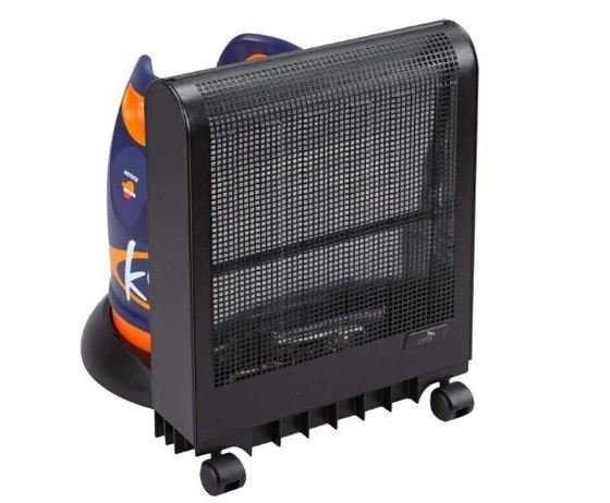 - Muy eficiente en el consumo max. 305 gr/h. Segura ya que tiene un triple sistema de seguridad. Además es pequeña y a venir con ruedas es fácil de mover.