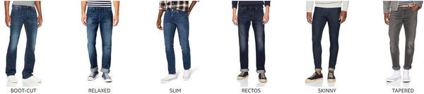 Slim, skinny, tapered o relaxed son tipos de vaqueros para hombre.