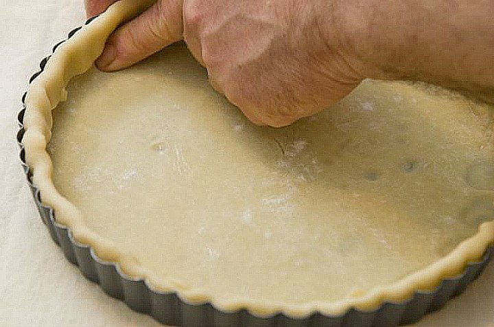 La masa para tartas o quiches necesitamos que no sea muy fina para que no se rompa, mejor de entre 0,5-1 cm de grosor. Muy grueso queda pesado para comer, pero demasiado fino la masa no aguanta bien el peso de los ingredientes y tiende a cuartearse.