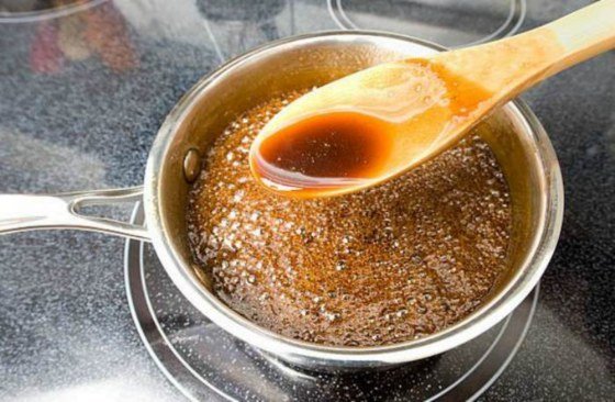 - Para hacer el caramelo: añade en un cazo el azúcar pero sin agua, solo azúcar. Si agregamos agua al principio podría cristalizar.