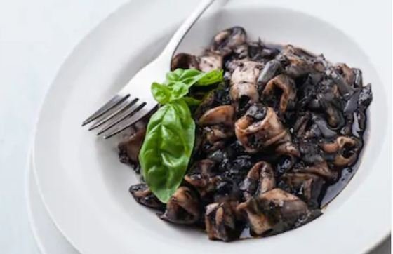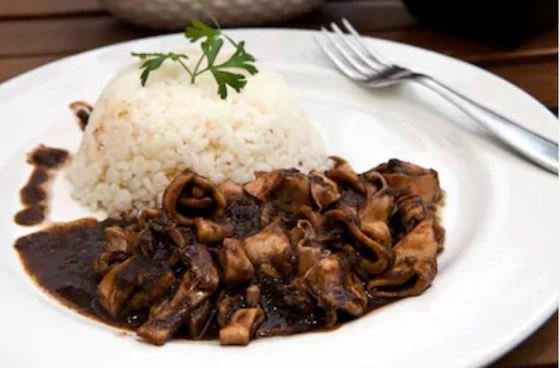 ¿De dónde viene esta receta? Usar tinta de calamar en principio por su color no parece muy apetecible, si te das cuenta en general no hay muchos platos que sean de color negro, en cambio en España tenemos el arroz negro y estos calamares.