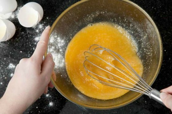 - Mezclar las yemas con el huevo entero, batiendo con unas varillas.