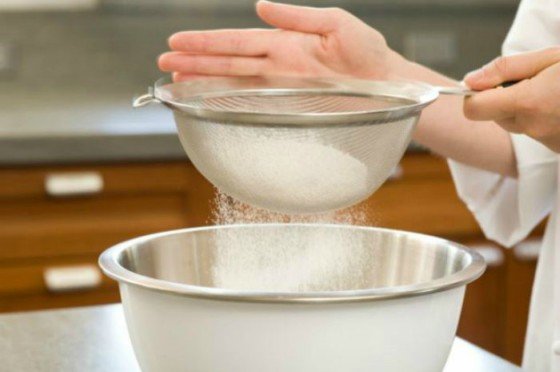 - Prepara un recipiente y con un colador tamizar la harina, lo reservamos.
