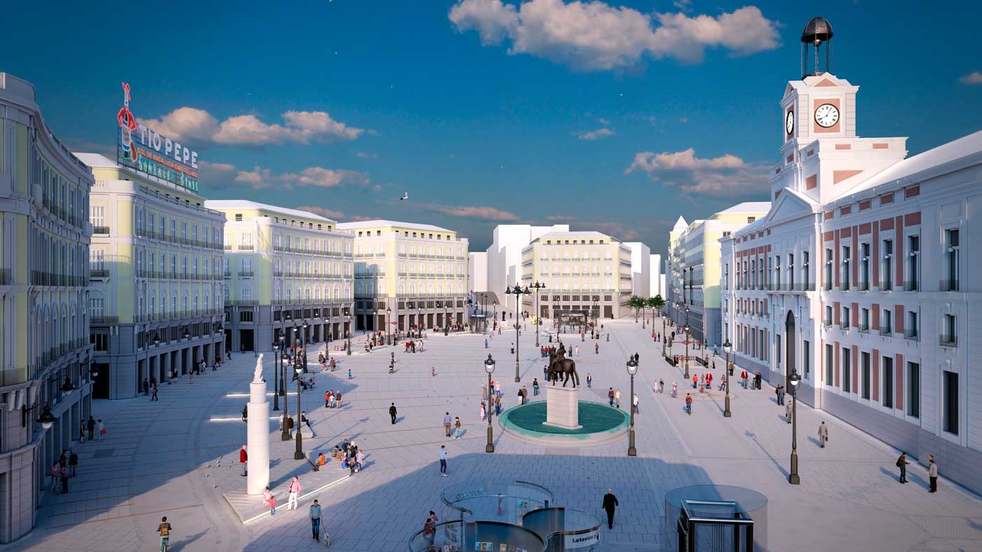 La efigie de Carlos III presidirá la nueva fuente de la Puerta del Sol, que tendrá un carácter singular acorde con la calidad monumental del entorno y cuyo fondo, de piedra color gris oscuro y con gran número de puntos de luz de diferentes tamaños, emulará a un cielo estrellado.