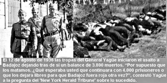 El general Yagüe toma Badajoz y fusila decenas de defensores republicanos.