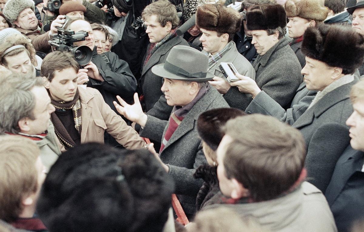 Gorbachov intentando convencer a los civiles que lo mejor para todos es seguir unidos dentro de la URSS.