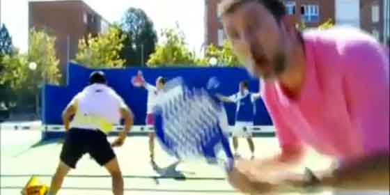 El vídeo incluye una surrealista partida de padel en el ghetto del club de tenis, que acaba en trifulca tras la irrupción de unos rojos que enojados con el candidato le envían de cabeza a la Moncloa.