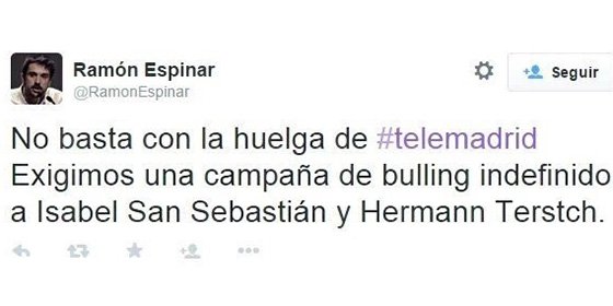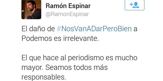 La frase en cuestión se hizo tendencia en Twitter con celeridad, y las interpretaciones pueden ir en varios sentidos. El analista político Hermann Tertsch, muy activo en la mencionada red social, sacó su dedo acusador y en contra de un podemita, el portavoz en el Senado y diputado en la Asamblea de Madrid, Ramón Espinar, y puso un ejemplo gráfico utilizando la hemeroteca tuitera: