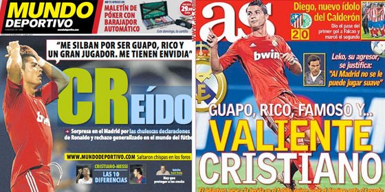 Como ocurriría con su principal competidor, Sport, el buen hacer del conjunto blaugrana no sólo evitaría la dureza del medio hacia el club culé, sino que permitió centrar esfuerzos en desestabilizar al Real Madrid. ‘CReído’ titulaba en relación a las palabras de Cristiano Ronaldo, en las que aseguraba, tras ganar al Zagreb: «Me silvan porque soy guapo, rico y famoso». Por su parte, desde Madrid, Marca opinaba diferente: ‘Valiente’