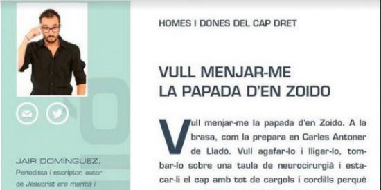 Si su actitud antaño despertaba indignación, ahora casi despierta pena y ternura. El pobre está desesperado por llamar la atención provocando a la desesperada, querría ser una especie de Empar Moliner yogurín. Y logra que se le hace caso, pero sólo ser el co-presentador de Toni Soler (como Dani Mateo es a Wyoming).