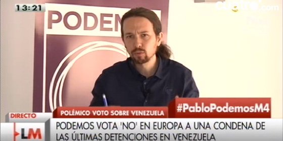 Podemos votó ‘no’ a Europa a las detenciones en Venezuela e Iglesias lo trató de explicar asegurando que «una cosa es que no me guste que se detenga a un alcalde, y otra que apoyemos una resolución que que dice que Venezuela es Arabia Saudí». El nerviosismo de Iglesias se vio reflejado en mitad de la entrevista cuando preguntado por tantas cuestiones sobre Venezuela le recordó al presentador, Jesús Cintora, los requisitos de cómo había sido pactada la entrevista.