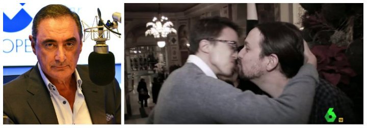 Saben ustedes que los de Iglesias están enfrentados con los de Errejón. Luego estos dos escenifican estas tontunas de besos en la boca, esta cerdada que se les ocurre hacer. En fin, allá cada uno.
