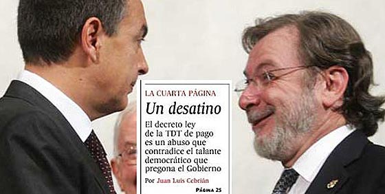 Muchos datos soportan la teoría de que ZP intentó quitarse de en medio a Cebrián y su molesta línea política, pero como con esto tampoco pudo, pago un rescate: intervino presionando a Telefónica para que asumiera el marrón.