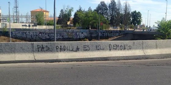 A Paz Padilla se le acumulan los problemas. A la imputación de su novio Antonio Juan Vidal Agarrado en el caso de los cursos de formación, la presentadora de ‘Sálvame’ tiene que tolerar pintadas en el barrio madrileño de Fuencarral de mal gusto que rezan: ‘Pas (sic) Padilla es el demonio’.