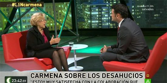 Y sobre los medios de comunicación, Carmena negó que dijera que los medios la hubiesen maltratado, una mentira que caía por su propio peso, pero que López se tragó sin rechistar: