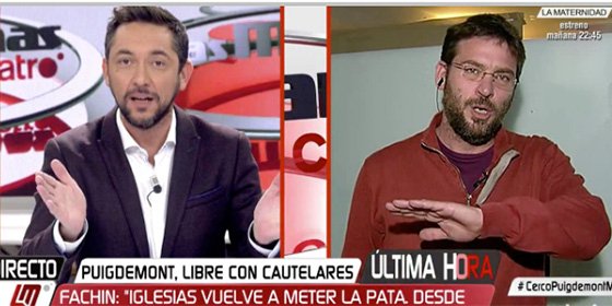 Ese fue el caso de Javier Ruiz en su programa este 6 de noviembre de 2017, dado que entrevistando al protagonista Fachín, se llevó un rapapolvo del expodemita fulminado por no entender su versión torticera de Cataluña:
