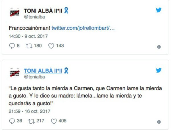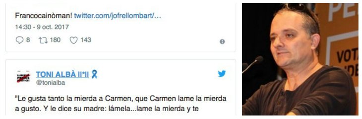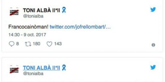 Albà demostró no tener límite cuando murió uno de los padres de la Constitución Española, Gregorio Peces Barba, y tuiteó que se alegraba de la muerte de ‘un hijo de la gran puta’.