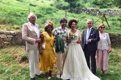 Los novios se casaron en una ceremonia civil al aire libre y rompieron muchos moldes respecto a las bodas tradicionales. Pareja e invitados mostraron originalidad en su indumentaria, tanto que pudieron resultar extravagante. La novia, por ejemplo, optó por una falda blanca y camisa color crema y el cuñado de Sánchez vistió pantalones tobilleros caqui y camisa blanca con hojas de gran tamaño.