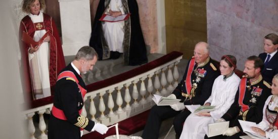 La ceremonia, oficiada por dos mujeres obispo, la obispo de Oslo, Kari Veiteberg, y la presidenta de la Conferencia Episcopal Evangélica noruega, Helga Haugland Byfuglien, tuvo lugar en la capilla del Palacio Real de Oslo ante representantes de varias casas reales europeas, la Familia Real noruega al completo y las principales autoridades de este país nórdico, encabezadas por la primera ministra, Erna Solberg.