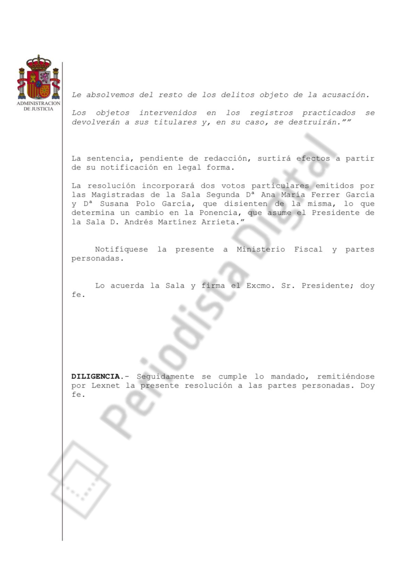 La mayoría de los jueces ha fallado a favor de la condena, que no ha sido unánime -de los siete, dos se han mostrado en contra- y que se ha adelantado la providencia para evitar cualquier posible filtración.