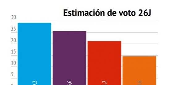También la participación que pronostica la encuesta del CIS para el 26J es inferior a la que auguró para el 20D, ya que en esta ocasión refleja que un 71% irá a votar «con toda seguridad», frente al 75,3 % que dijo que lo haría seguro en diciembre, cuando la participación finalmente se situó en el 73,2 %.