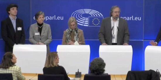 Rosa Díaz y Juan Carlos Girauta presentaron en Bruselas este 23 de enero de 2024 el informe sobre el deterioro del Estado de Derecho en España que ya ha alcanzado reunir más de medio millón de firmas.