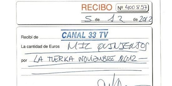 A (su móvil consta como teléfono de contacto de CMI), firmó un recibo por la producción del mismo programa, aunque en esta ocasión por 1.500 euros y sin IVA.