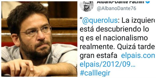 En Twitter le recuerdan al podemita de Bahía Blanca cómo descubrió que era independentista diez minutos antes de la República Catalana, una epifanía similar a la que le ocurrió pero al revés a Nacho Escolar, que sintió que era españolista en el descuento, cuando se sacó un artículo de la manga criticando a los separatistas. Él, que siempre se mofaba de los fachas diciendo «si, hombre, que España se rompe…»