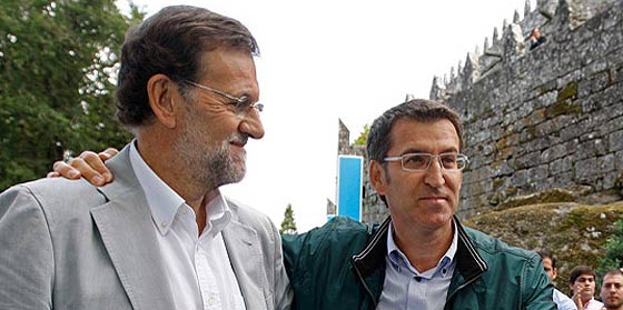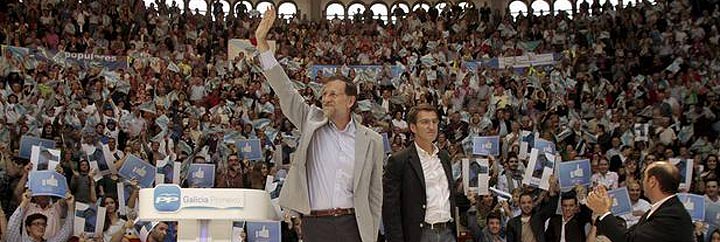 Mariano Rajoy hizo este sábado, 6 de octubre de 2012, un breve alto su gran tarea, que no es otra que negociar un rescate favorable con la Unión Europea para sacar del hoyo a la economía española, y se volcó en ayudar a Alberto Núñez Feijóo a ganar las elecciones autonómicas.