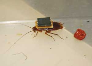 Las cucarachas utilizan sus antenas para conocer el entorno y no tropezar o chocarse con nada. Los científicos han implantado una «pequeña mochila» mediante una cirugía con anestesia que permite mediante un teléfono móvil generar impulsos para controlar las neuronas de sus antenas, lo que hace que la cucaracha gire pensando que hay algún obstáculo cerca.