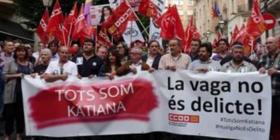 «CCOO sigue firme en la convicción de que la huelga y su publicad es un derecho que se tiene que garantizar por parte de los poderes públicos, y el hecho de perseguir y encausar sindicalistas, con peticiones de prisión totalmente desproporcionadas, es un grave atentado contra las libertades de los trabajadores»,