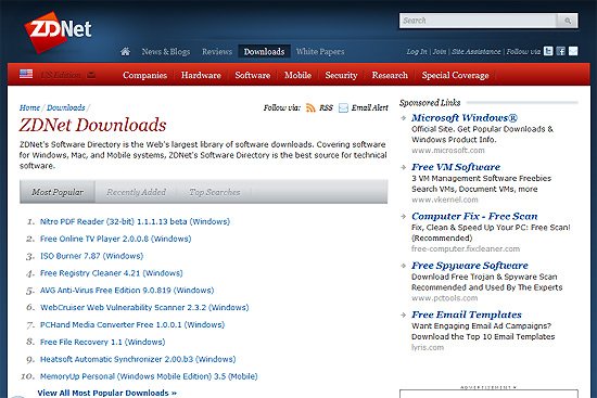 - ZDNet downloads (en inglés): es muy parecido a CNET. Se anuncia como la base con mayor cantidad de software gratuito de Internet.