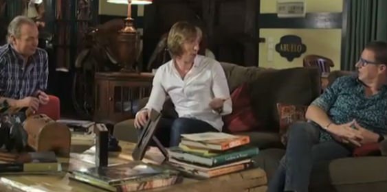 Bertín Osborne recibió, en su casa de Sevilla, a los hermanos Jorge y César Cadaval , componentes del dúo cómico ‘Los Morancos’, además de al marido del primero y a uno de los hijos del segundo. Fue una charla distendida pero con demasiados puntos muertos.