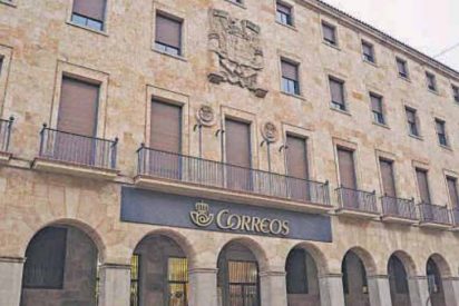 (El edificio de Correos de Salamanca, en plena Gran Vía, sigue luciendo el escudo franquista)