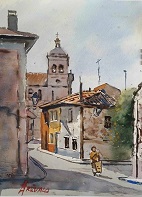 (En Cigales. Acuarela de José María Arévalo)