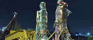 (El 11 de junio de 2021, el Ministerio de Cultura colombiano retiró de la calle 26 de Bogotá las estatuas de Isabel la Católica y Cristóbal Colón, atacadas por grupos indigenistas)