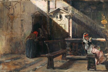 (Raimundo de Madrazo y Garreta, “Interior de la iglesia de Santa Maria della Pace, Roma. La confesión”, 1868-1869. Colección Madrazo, Comunidad de Madrid.)
