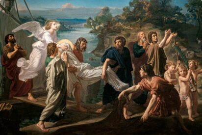 (Raimundo de Madrazo y Garreta, “La traslación de los restos del apóstol Santiago a la sede de Padrón”, 1856-1859. Museo Catedral de Santiago de Compostela.)