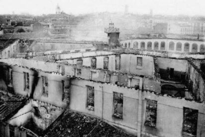 (Después de tres días de incendio, la Academia quedó arrasada)