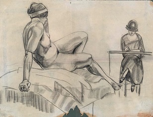 (José Manaut Viglietti. «Desnudo de mujer y otra pintando». París, 1923-1927. Carboncillo sobre papel. Colección Manaut)