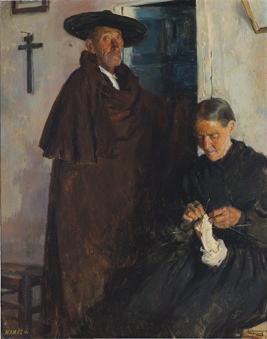 La exposición permite apreciar los hilos conductores de su dedicación profesional, centrados sobre todo en dos temas: el cuadro de costumbres y el retrato. El cuadro de costumbres parte de los primeros ejemplos que pinta en Brujas, durante una estancia especialmente importante en 1902, en la que asimila profundamente la pintura del norte —en particular, la flamenca y la holandesa—, rasgo que se convertirá en una de las señas de identidad de su obra. Posteriormente, aborda este género en El Paular, pero a partir de 1906 se centra en Galicia, tema que mantendrá hasta el final de su trayectoria.