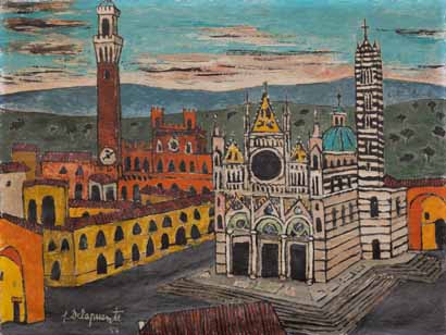 (Fernando Delapuente, Il Duomo en Siena, 1957. Óleo sobre lienzo. Colección particular)