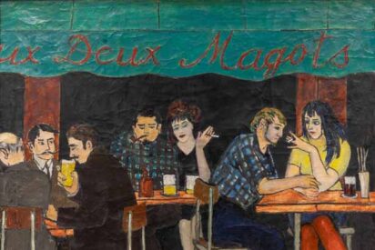 (Fernando Delapuente, Aux deux magots, 1958. Óleo sobre lienzo. Colección particular)