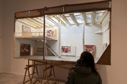 (Vista de la instalación «Art Center 6 -Blow Down-» de Thomas Hirschhorn en el espacio Pieza Única, 2025)